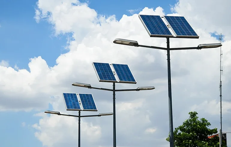 Solar street lights are outdoor lighting units that are powered by photovoltaic (PV) panels, which convert sunlight into electricity